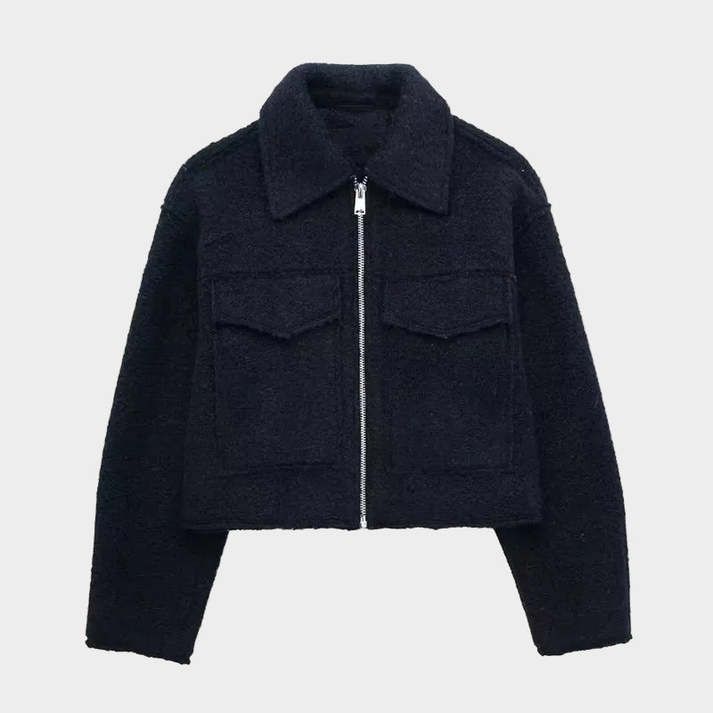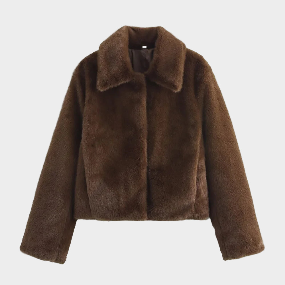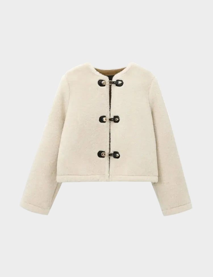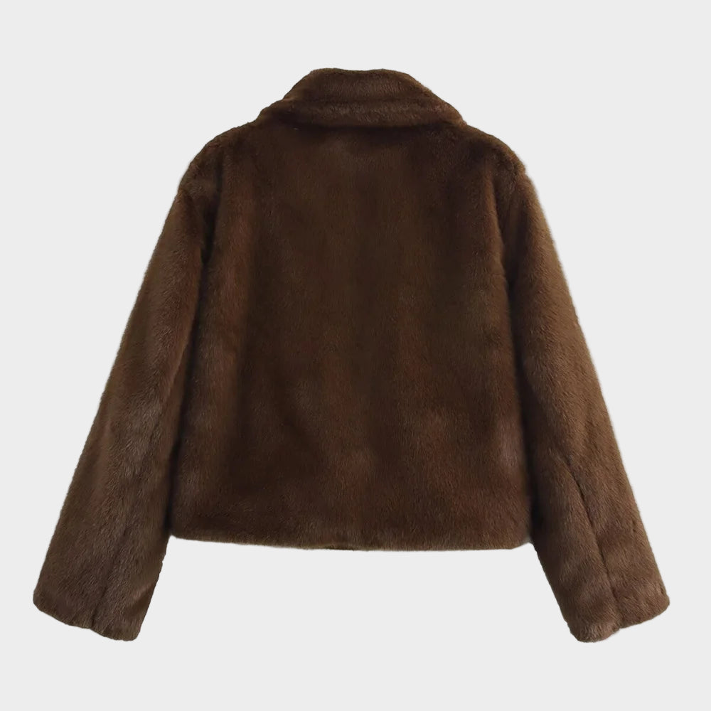 Noelia ziemas jaka ar pūkainu audumu un retro stila priekšējo aizdari