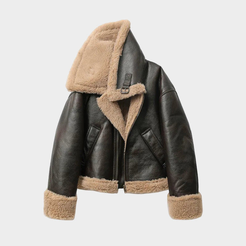 Adriana divkrāsu šerpu jaka ar ikdienišķu dizainu un urbānu pieskārienu