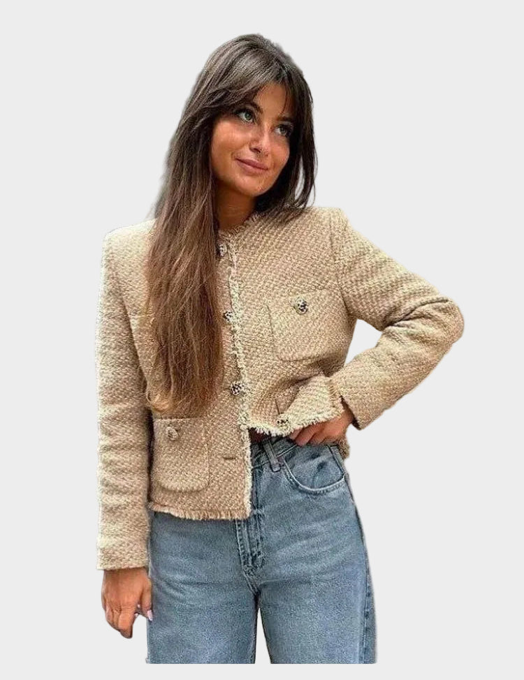 Amaya īsa tvīda jaka ar augstākās kvalitātes apdari un starpsezonas stilu