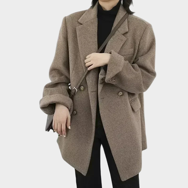 Klaudijas korejiešu stila žakete brūnā krāsā ar taisnu piegriezumu un brīvu siluetu