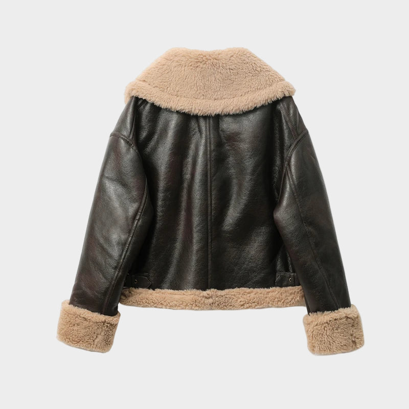 Amaya mākslīgās kažokādas baikeru jaka ar strukturētu siluetu un šiku stilu