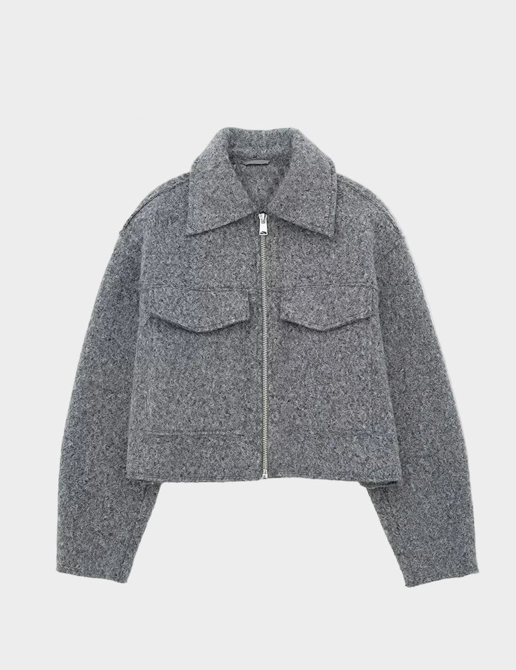 Marta Vintage iedvesmota pelēka jaka ar rāvējslēdzēja detaļu un garām piedurknēm
