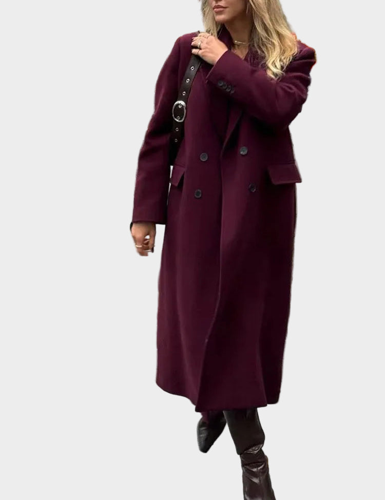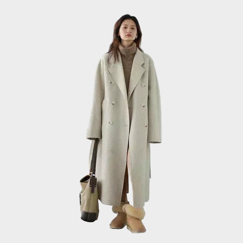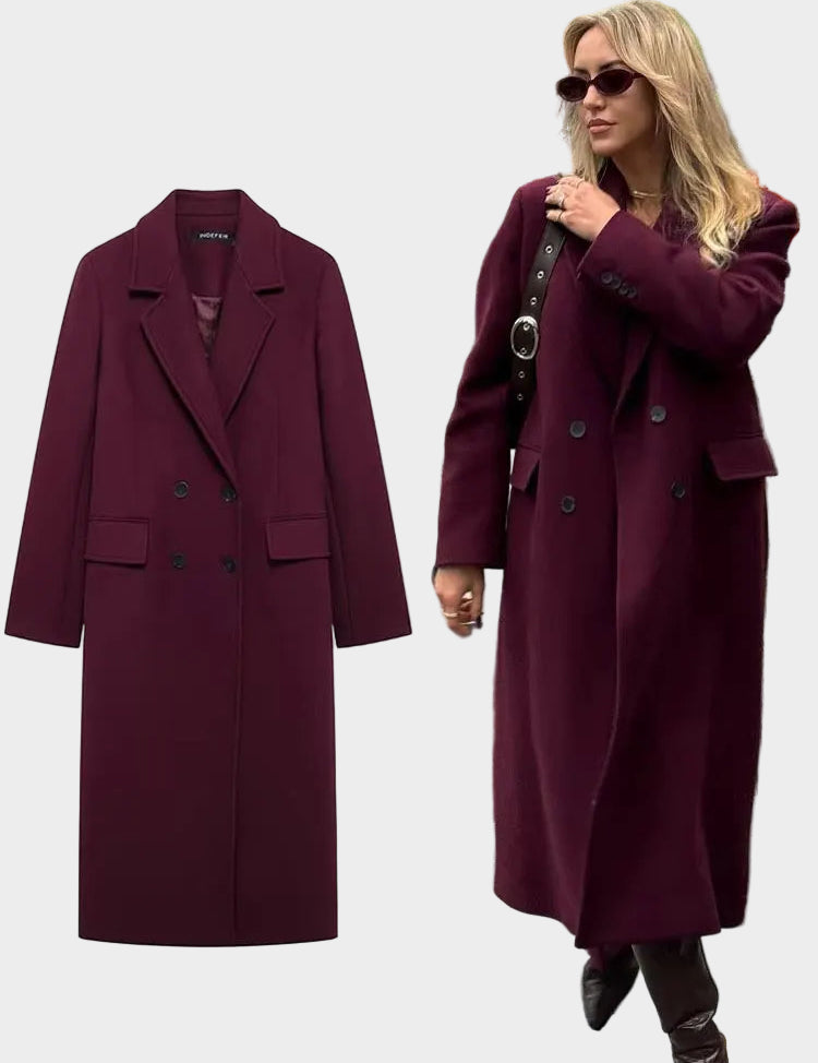 Marina divpusējs vilnas mētelis ar divrindu aizdari un brīvu piegriezumu