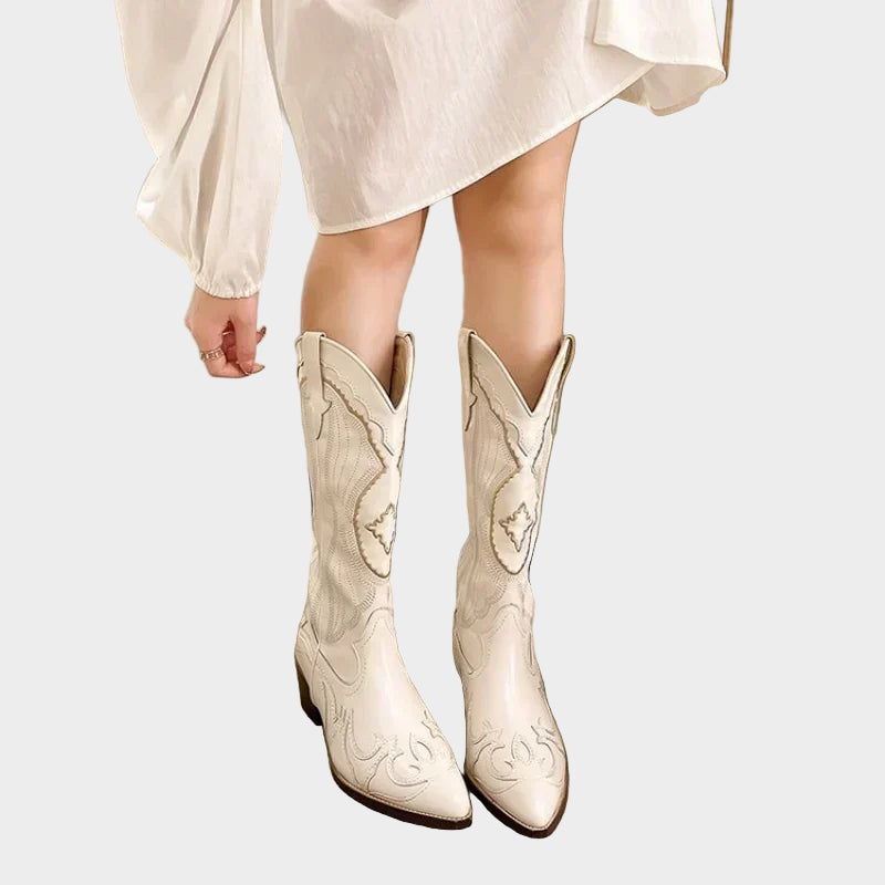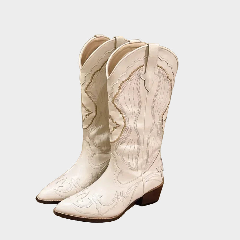 Amalia kovboju zābaki ar roku izšuvumu un sānu aizdari