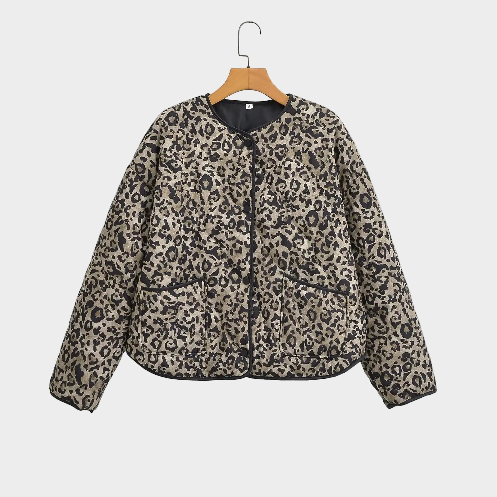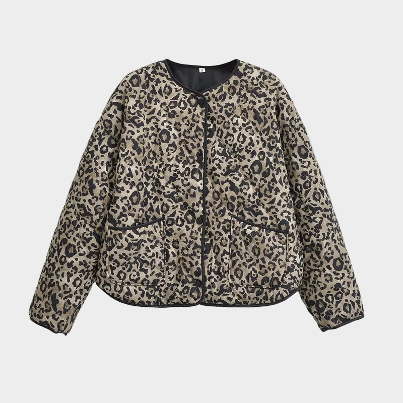 Alba dzīvnieku apdrukas mētelis ar pogu detaļu priekšpusē