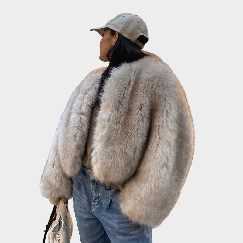 Amaya mākslīgās kažokādas baikeru jaka ar strukturētu siluetu un šiku stilu