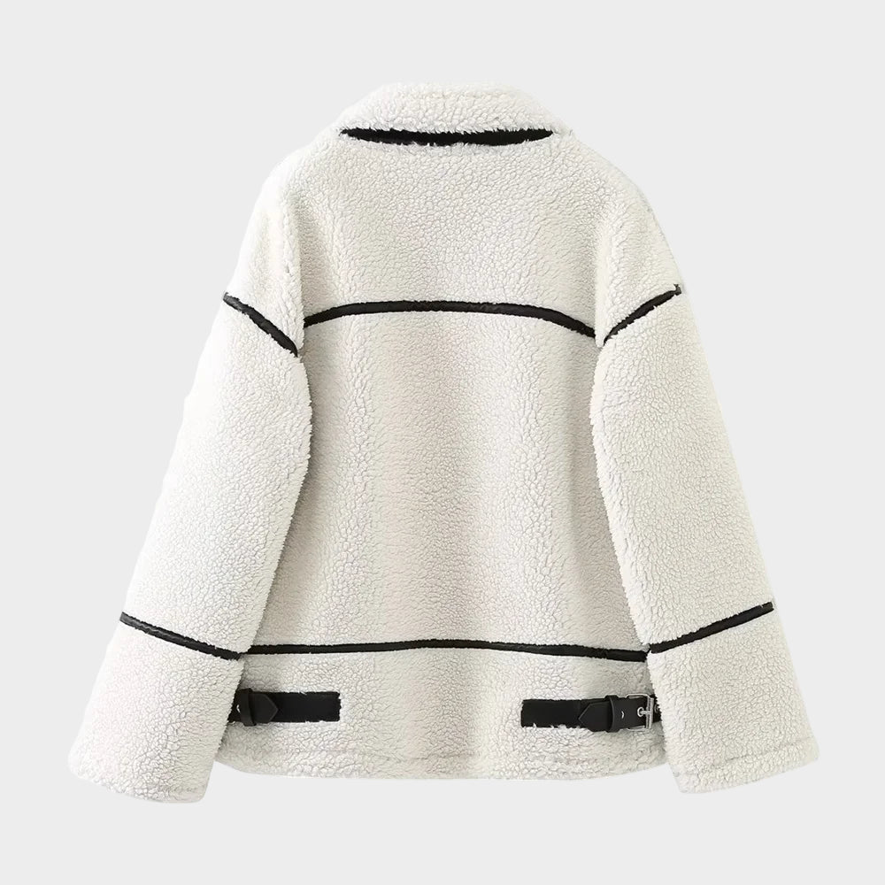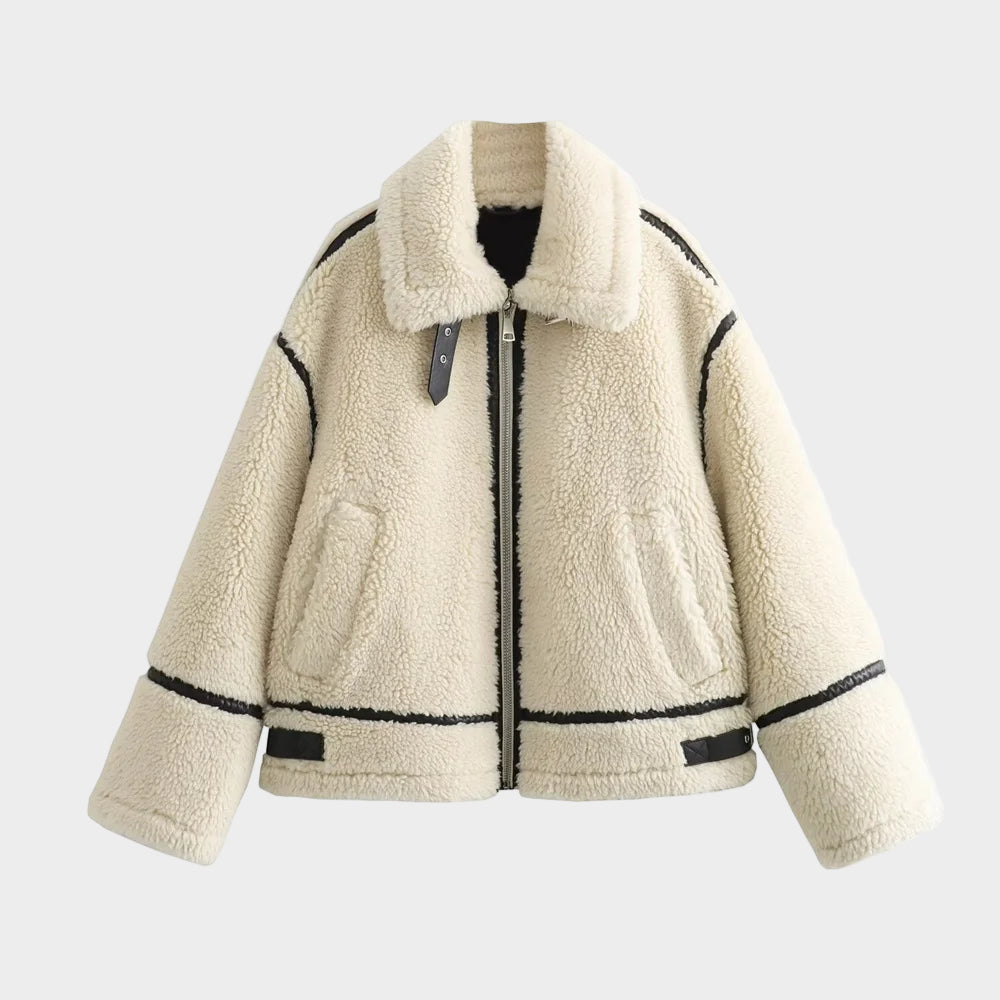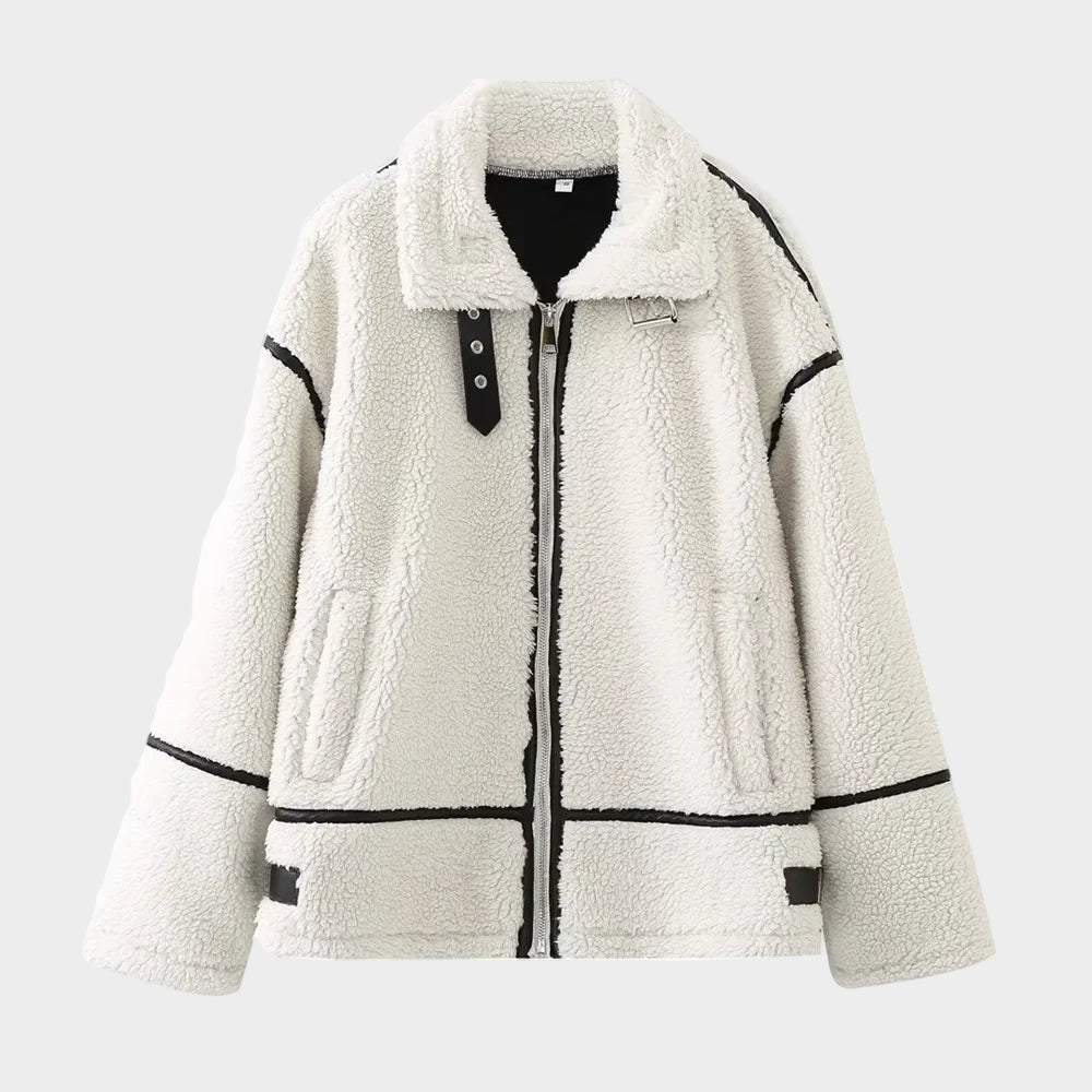 Adriana divkrāsu šerpu jaka ar ikdienišķu dizainu un urbānu pieskārienu