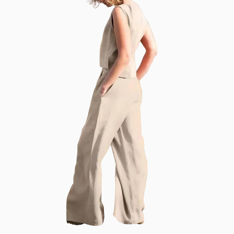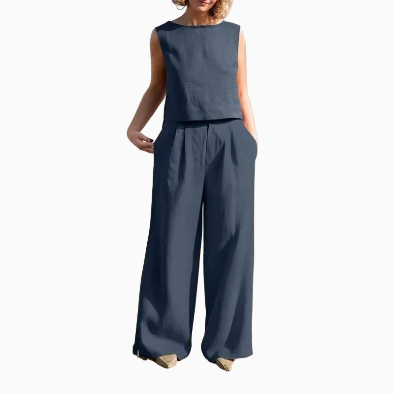 Alehandra divdaļīgs komplekts vienkrāsainā krāsā ar asimetrisku blūzi un taisnām biksēm