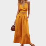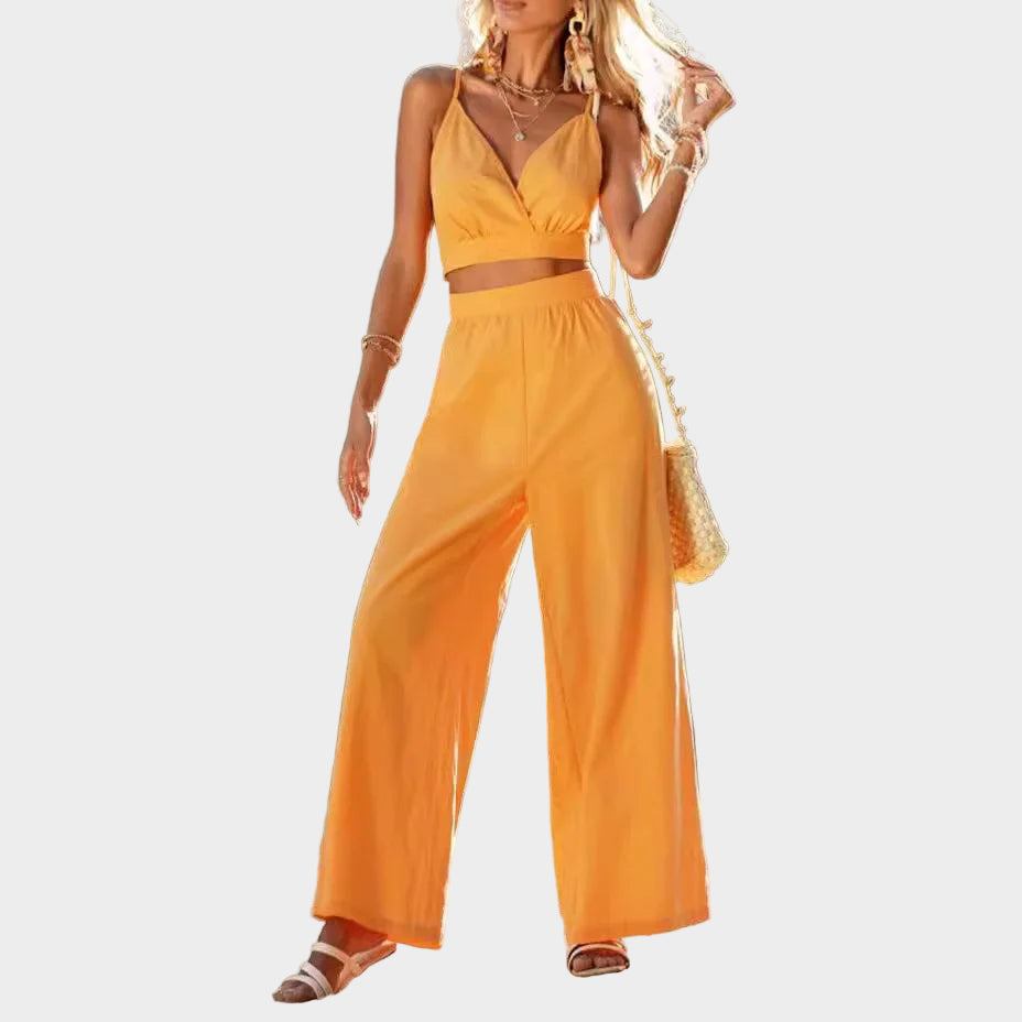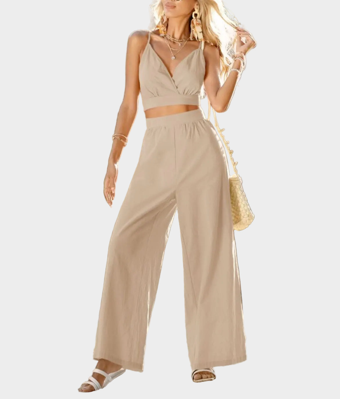 Noelijas minimālistisks tērps ar lencītēm rotātu kleitu un plūstošām detaļām
