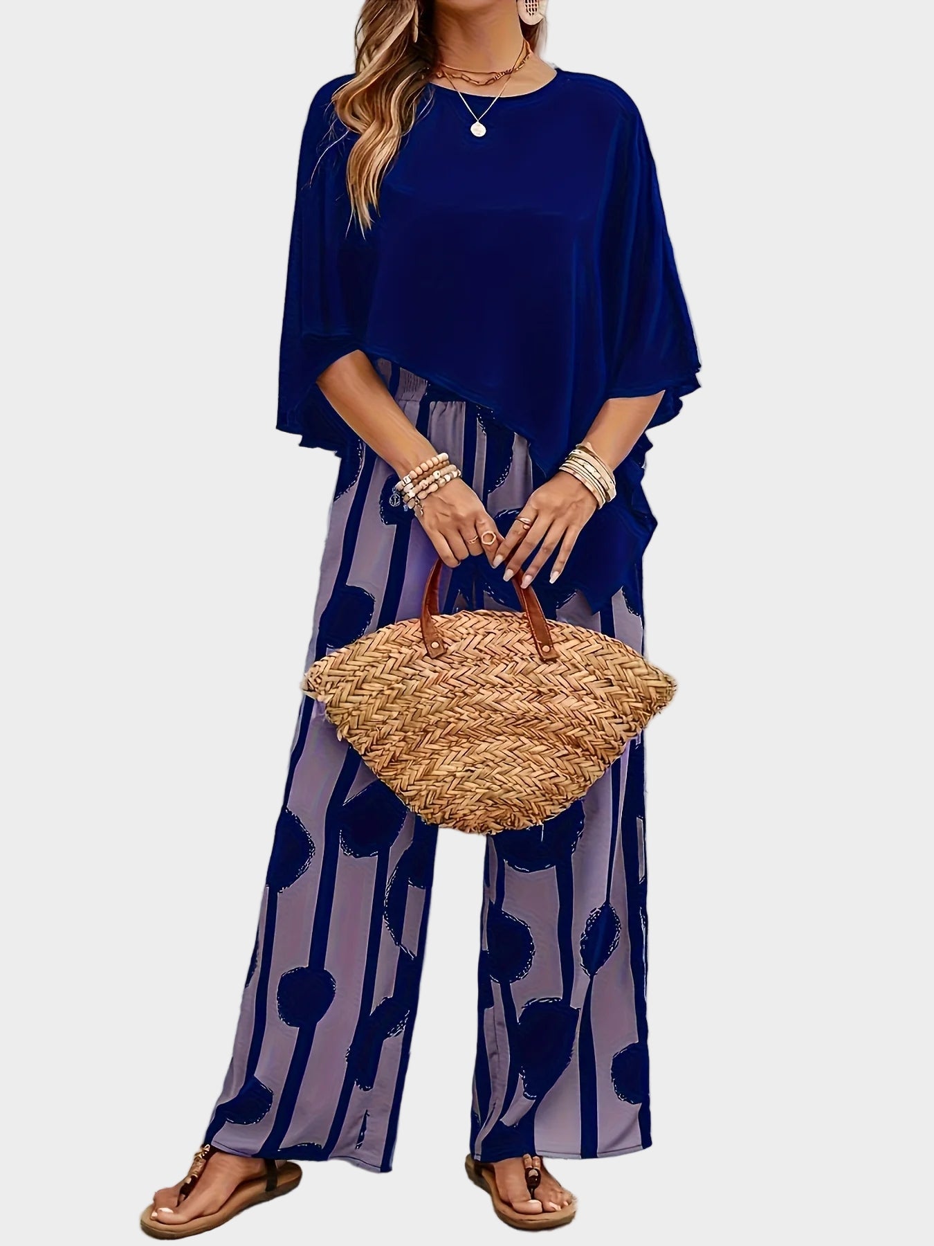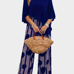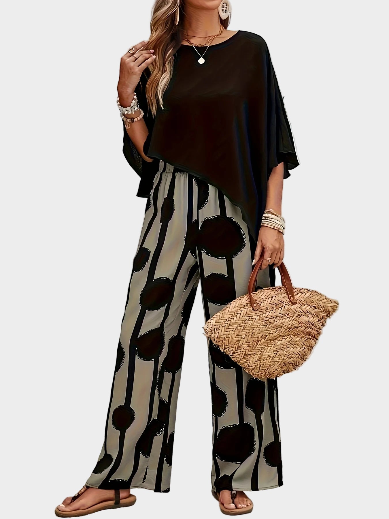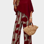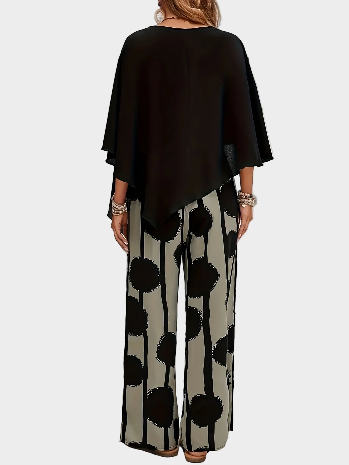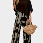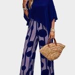 Terēzes ikdienas komplekts no viegla auduma ar apdrukātu blūzi un plūstošām biksēm